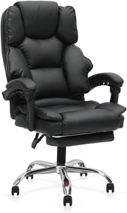 Big and Tall Office Chair 400lbs Wide Seat, Leather High Back Executive Office Chair with Foot Rest, Ergonomic Chairs Lumbar Support for Lower Back Pain Relief (Black)