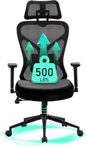 Big and Tall Office Chair 500 lbs – Ergonomic Desk Chair with Adjustable Lumbar Support, 2D Headrest, 3D Armrests, Extra Thick Cushion & Spring Seat (Black)