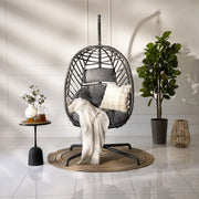 Outdoor Hanging Egg Chair with Stand - Weather-Resistant Rattan, Sturdy Steel Frame & All-Weather Cushions for Patio, Garden, or Indoor Use